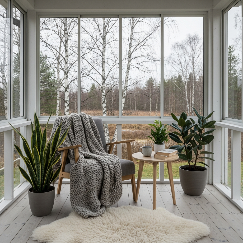 Embrace minimalism and natural light to create a peaceful sanctuary. Light wood furniture with clean lines, such as a simple bench or a small coffee table, takes center stage. Layer soft, chunky knit throws and sheepskin rugs for warmth.