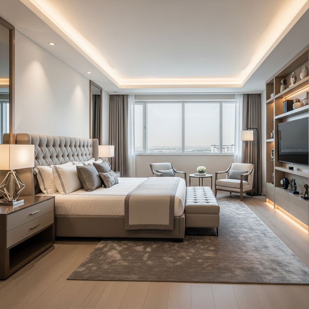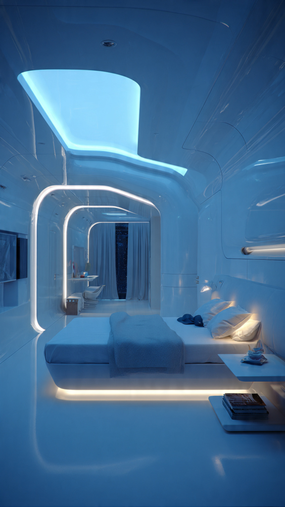 Explore a minimalist and high-tech aesthetic for a truly modern bedroom. This design focuses on innovation, clean lines, and a streamlined, sophisticated look.