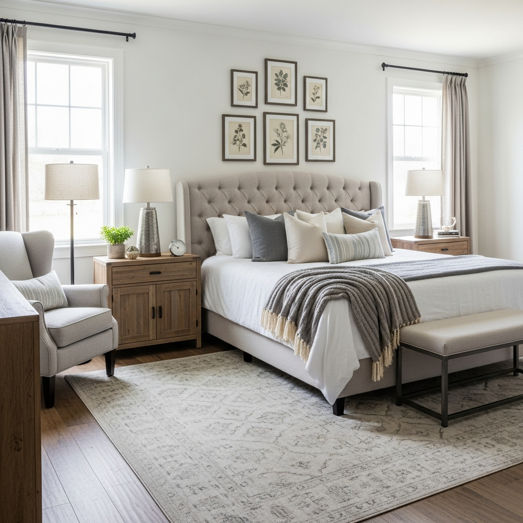 Blend rustic warmth with contemporary clean lines. This style offers comfort and coziness with a sophisticated, updated farmhouse aesthetic.