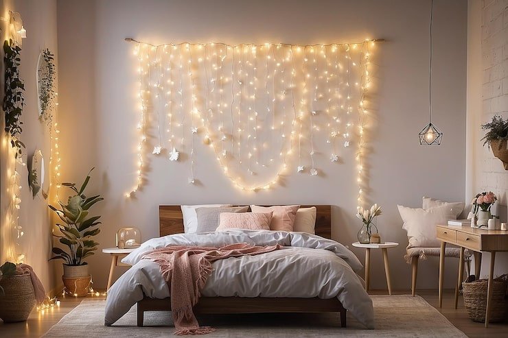 String lights are a versatile and cozy addition to any bedroom. You can string them around your bed frame, hang them on your walls, or place them around your Christmas tree. The soft glow of string lights can create a peaceful and relaxing ambiance, perfect for unwinding after a long day.