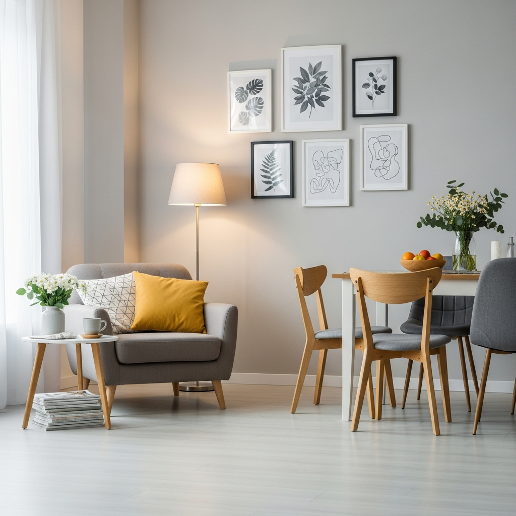 Create a striking gallery wall using affordable frames from discount stores or by upcycling old ones with spray paint. Mix personal photos, inexpensive art prints, and even small mirrors for variety. Arrange them thoughtfully on a prominent wall.