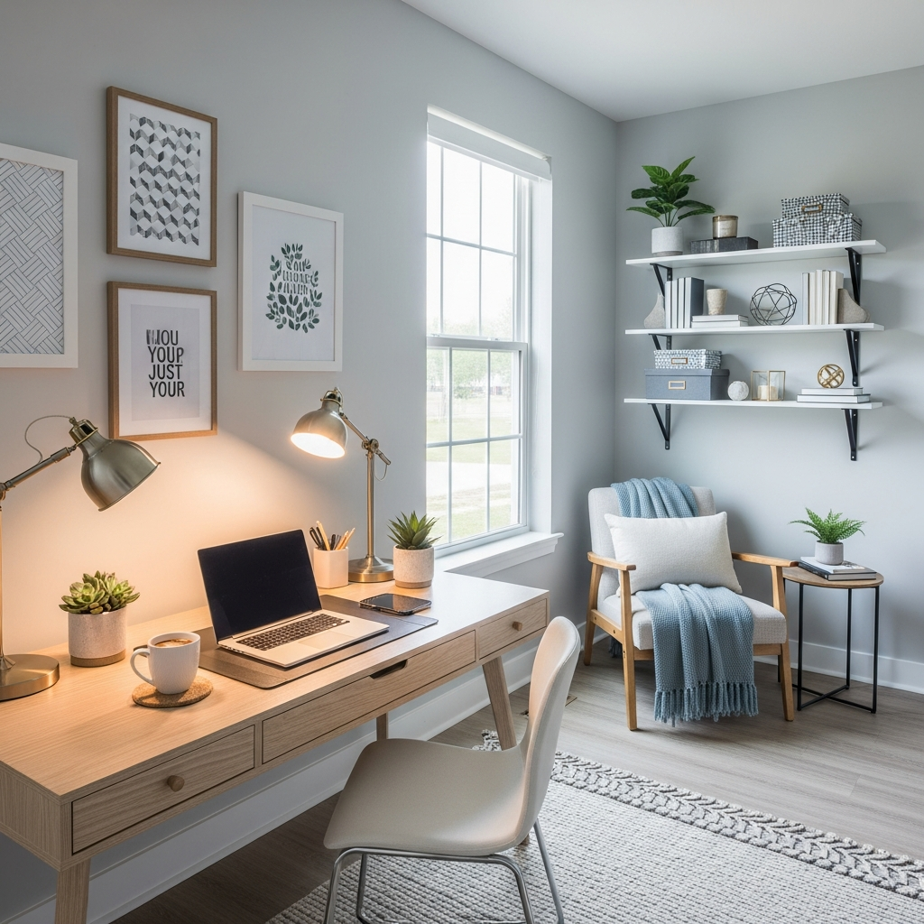 Even a small corner dedicated to work or hobbies can be made stylish and motivating.