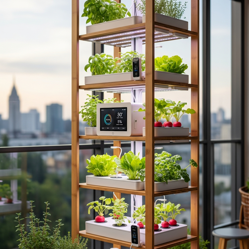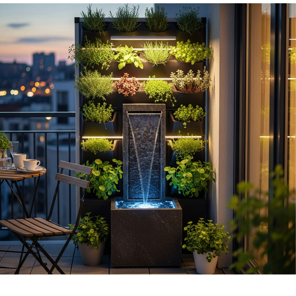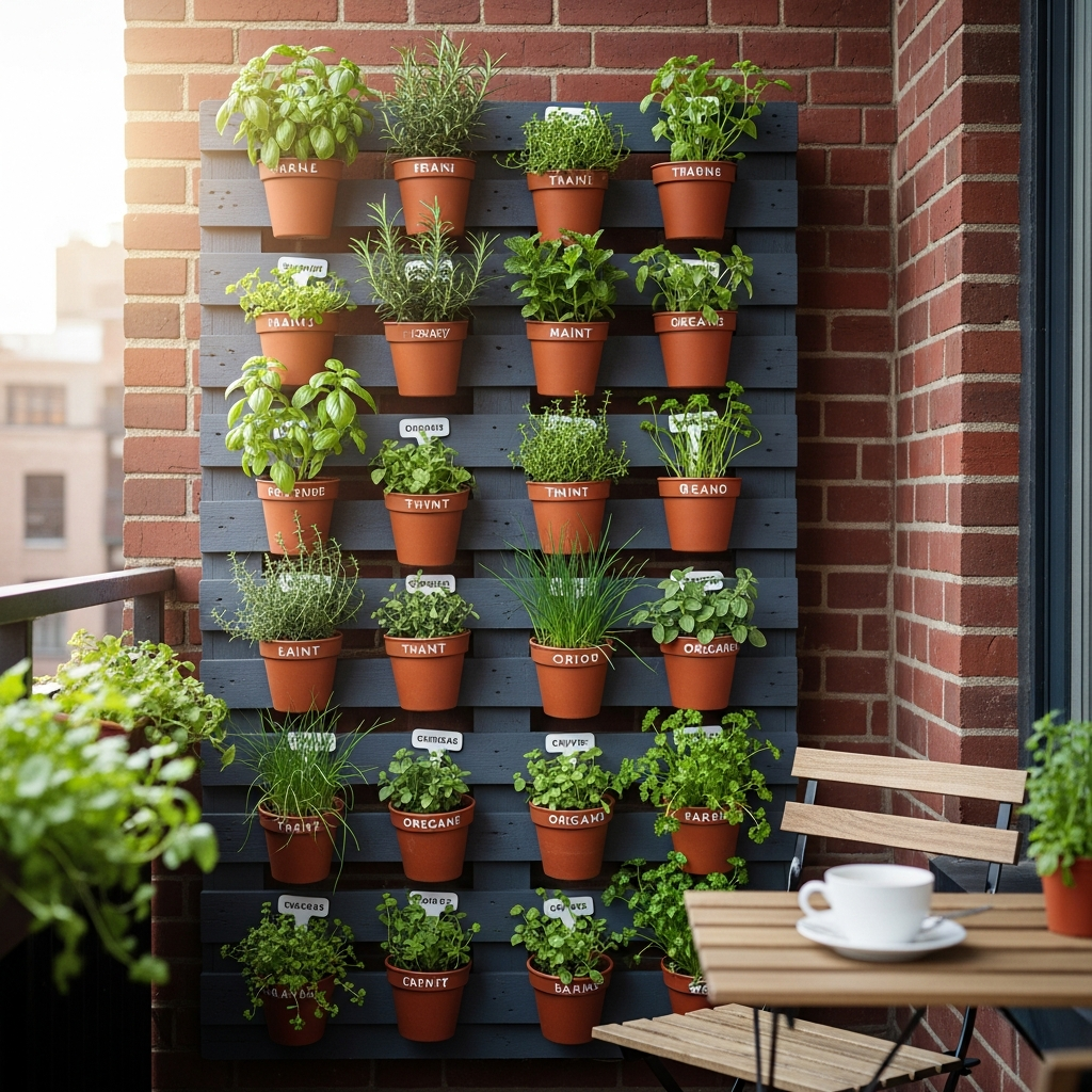 Embrace the power of vertical space with a dedicated herb wall. Using stacked planters or a wall-mounted grid, you can grow a variety of culinary herbs like basil, mint, rosemary, and chives. The color palette remains fresh with greens, complemented by natural wood or sleek black metal planters.