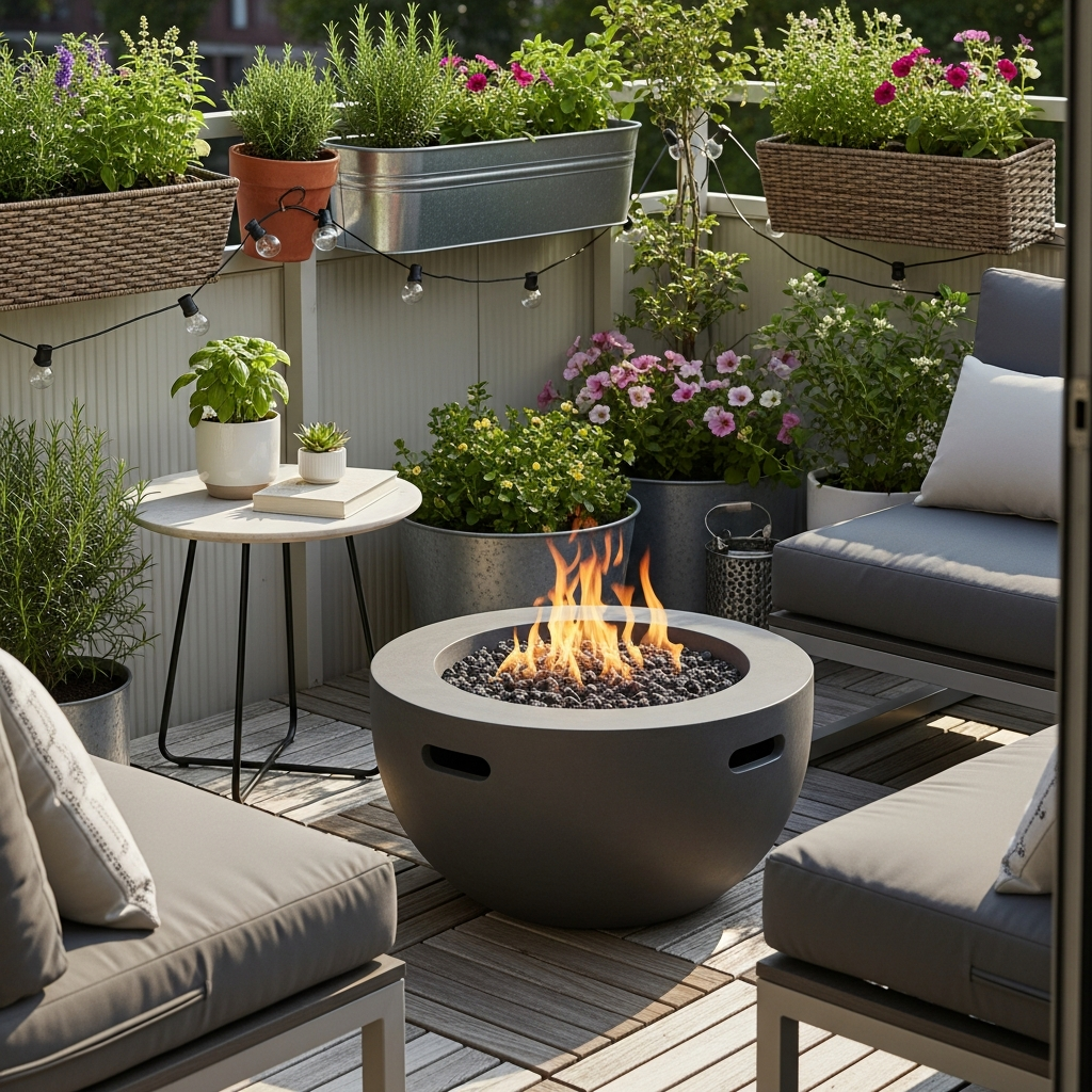 If regulations allow and space permits, a tiny tabletop or very compact fire pit can add incredible warmth and ambiance. Surround it with comfortable floor cushions and heat-resistant planters.