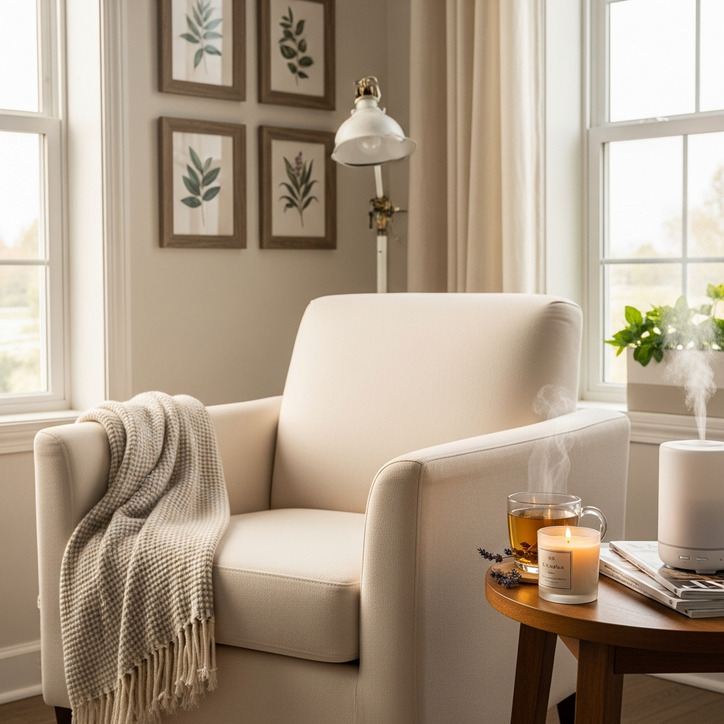 Find a comfortable armchair or a plush floor cushion. Place it next to a window or in a quiet corner. Add a small side table for your cup of tea and a good book, along with a warm blanket and a soft-glowing floor lamp. This creates an inviting space for unwinding.