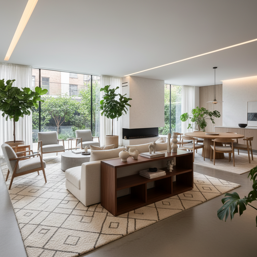 Many apartments feature open-concept living and dining areas, which can feel challenging to furnish. Use strategic placement of furniture and rugs to define distinct zones. A large area rug can anchor the living room seating arrangement, visually separating it from a dining nook or entryway. A low bookshelf or console table can act as a soft divider without blocking light or flow. This creates a sense of order and purpose within the larger space, making each area feel intentionally designed and collected.