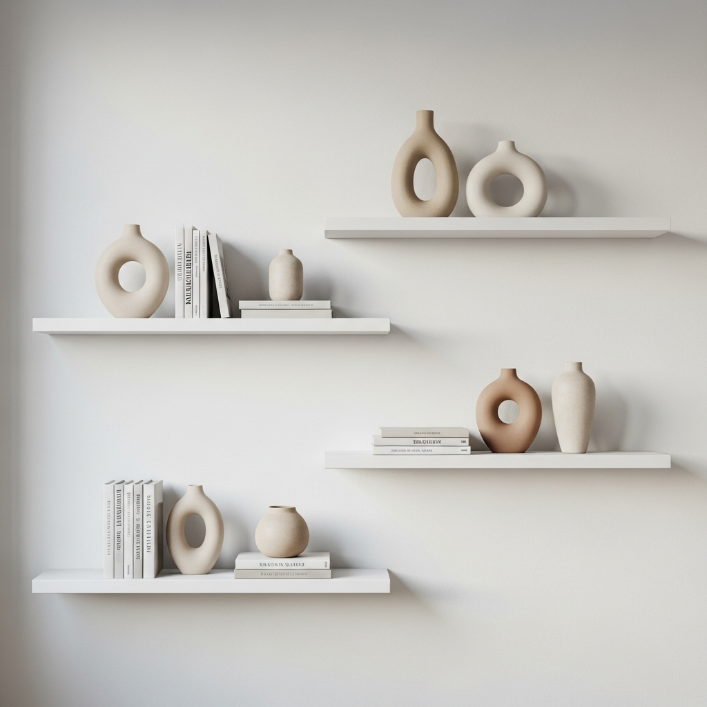 Floating shelves offer a way to display decorative objects without the bulk of a heavy bookcase. Use them to showcase a mix of ceramic vases, hardbound books, and small sculptures. Ensure there is plenty of white space between items to keep the look clean and professional.