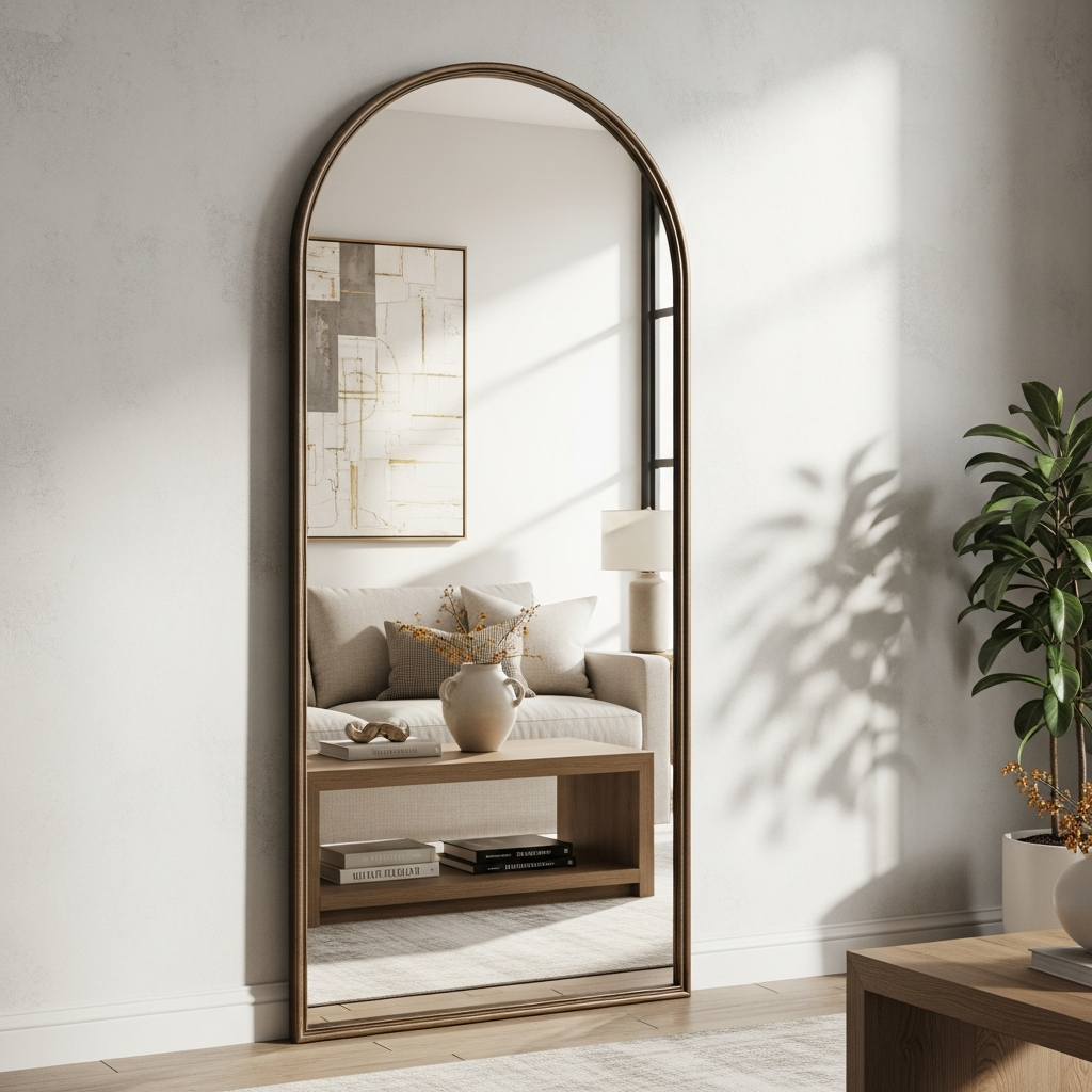 Mirrors are a classic designer trick for making small apartments feel expansive. A large floor mirror leaning against a wall or a series of mirrored panels can reflect light and views, effectively doubling the visual depth of your living room while acting as a decorative element.