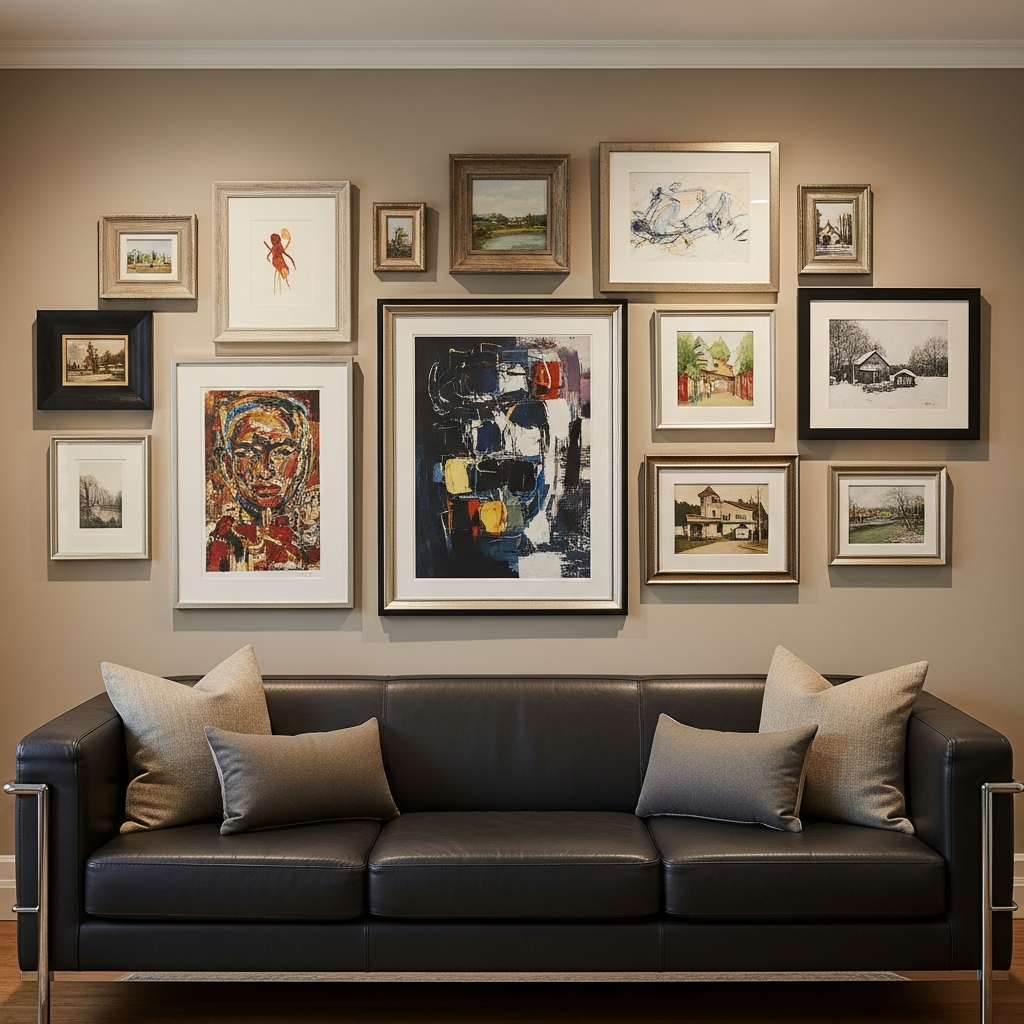 A gallery wall is an excellent way to display a collection of art that reflects your personality. Instead of using identical frames, mix materials like wood, gold leaf, and black lacquer. Incorporate a variety of mediums, including oil paintings, sketches, and photography, to achieve a sophisticated, collected appearance.