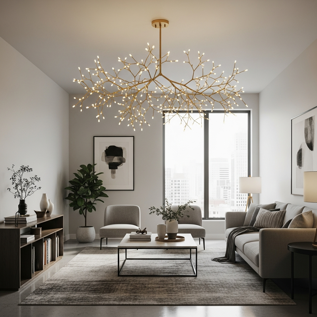 Swap out standard apartment lighting for a bold statement piece. An oversized Sputnik chandelier or a sculptural pendant light acts as a focal point and elevates the entire room’s design. Quality lighting serves as the jewelry of the room, adding a polished finish to your living space.