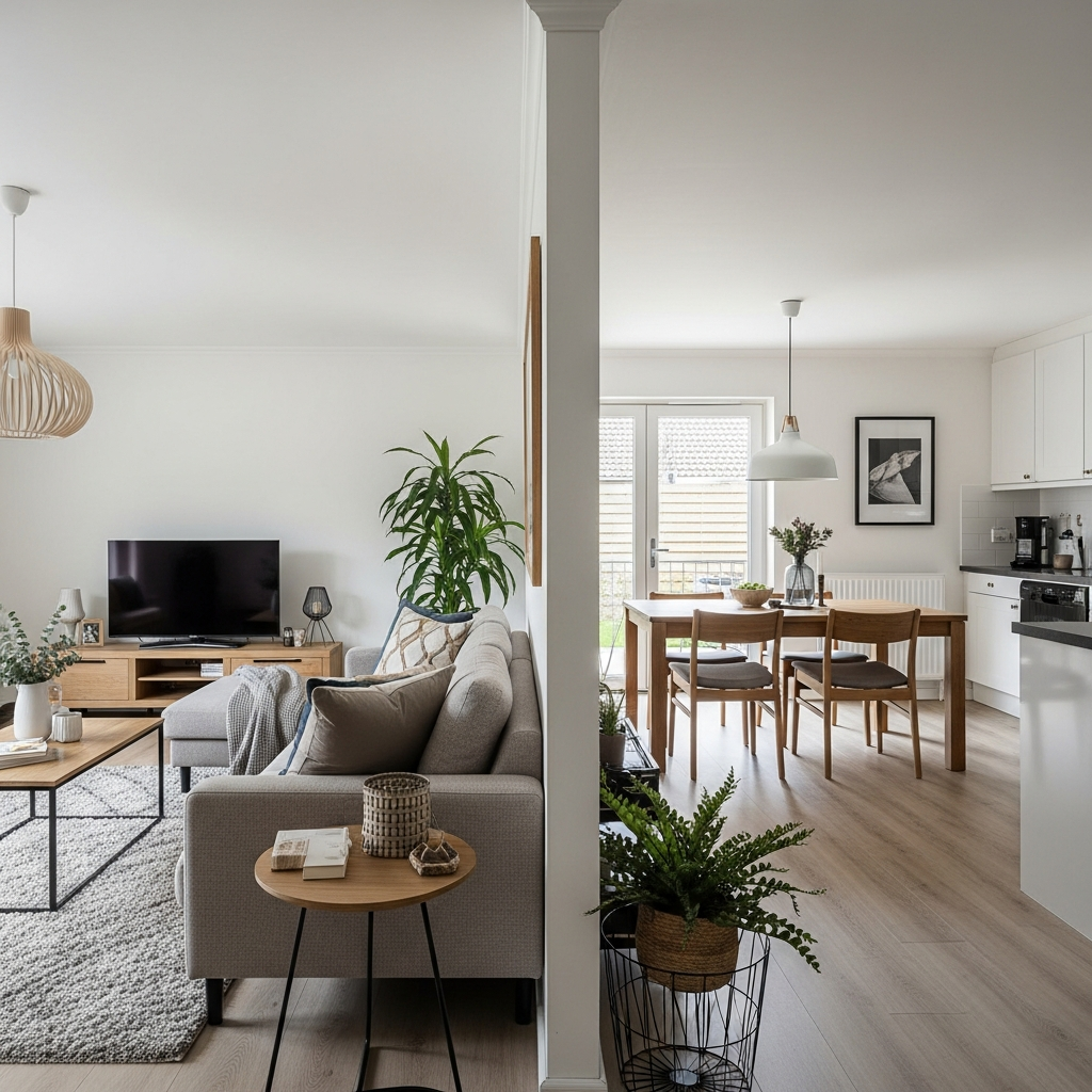 In many apartments, the living room is part of an open floor plan. Use furniture placement to define specific zones. A sofa back can act as a divider between the living area and the dining space, while a well-placed console table can further reinforce these boundaries.