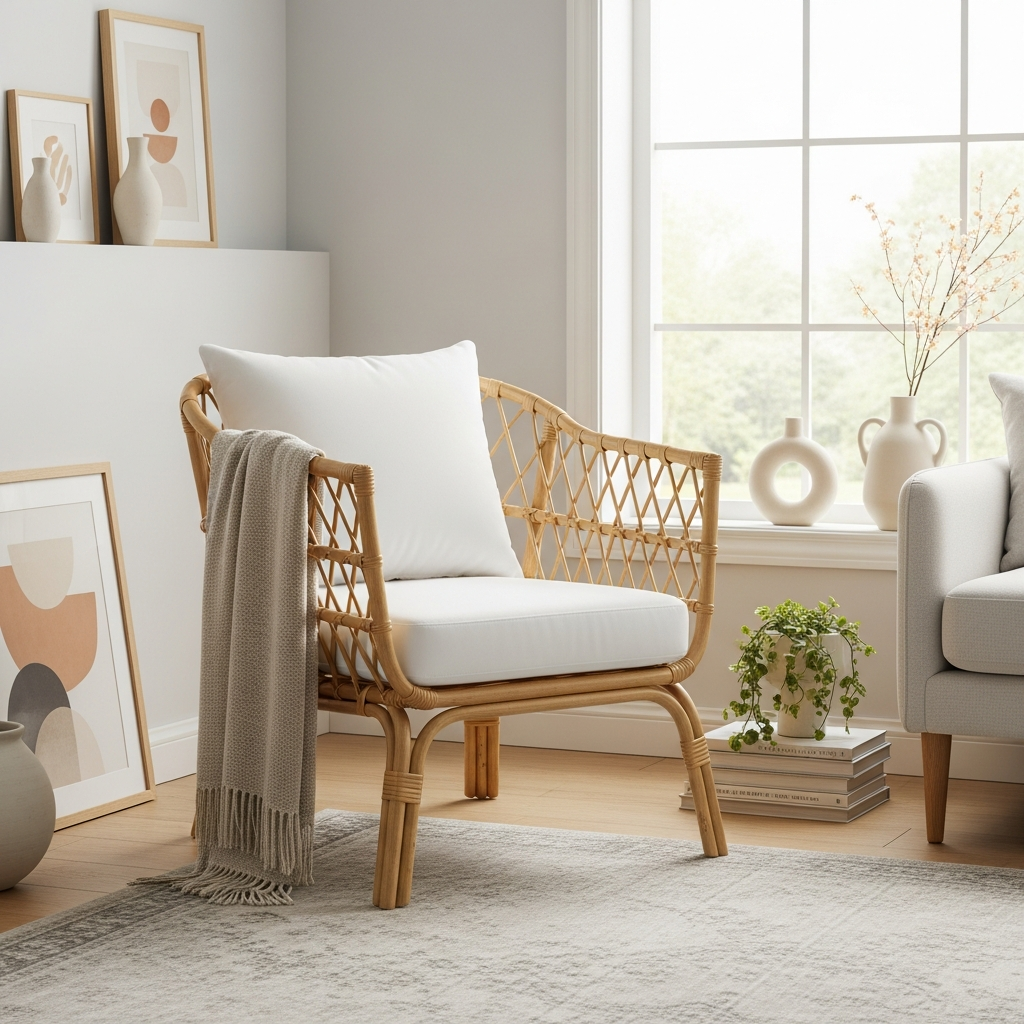 Incorporate natural materials like rattan, seagrass, or wicker to soften the modern lines of an apartment. A woven basket for blankets or a rattan accent chair introduces an organic texture that balances more industrial or contemporary furniture pieces.