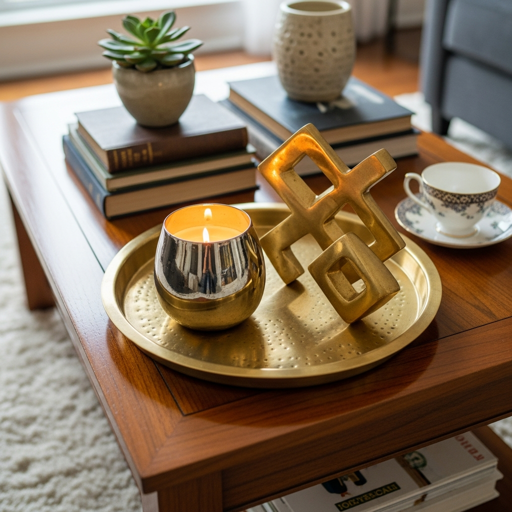 Integrate metals like brass, copper, or polished chrome through hardware, lamp bases, and decorative trays. Mixing metals can add to the collected look, provided there is a dominant finish that anchors the space. These reflective surfaces add a necessary sparkle to the room.