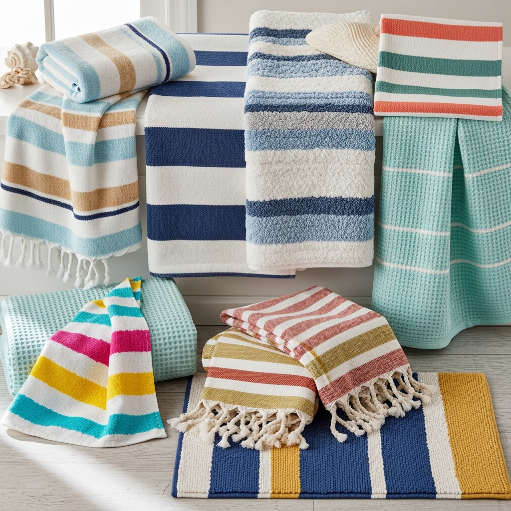Classic coastal patterns, like stripes, are timeless. Navy and white, or sky blue and white stripes, can appear on towels, shower curtains, or a small area rug. This pattern brings a crisp, tailored feel, reminiscent of traditional seaside living.