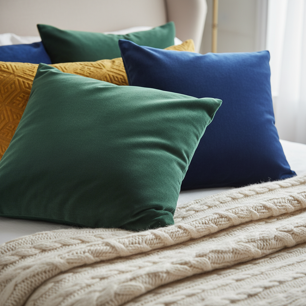 Introduce velvet through a headboard, throw pillows, or an accent chair for instant luxury. Its soft sheen and rich feel elevate the space, adding a touch of glamour. Pair with polished metals like brass or gold for a truly opulent, sophisticated, and indulgent mood.