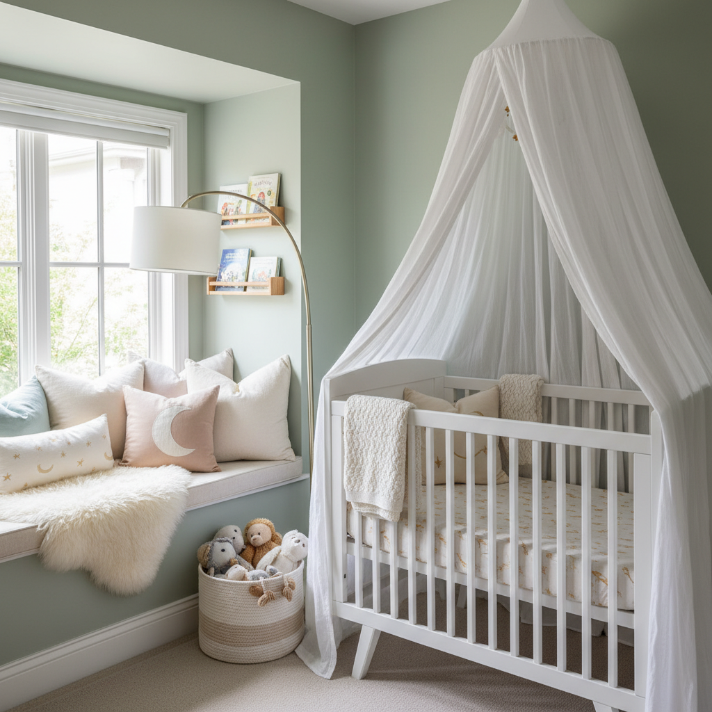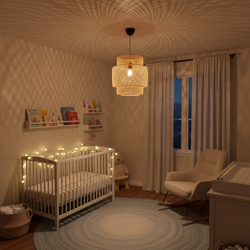 Lighting is crucial for setting a calm and nurturing mood. Opt for warm, diffused light sources. A woven pendant lamp or a fabric-covered lantern can be a beautiful central fixture. Supplement this with a soft-glowing night light, string lights draped over a canopy, or a dimmable floor lamp. The goal is to create a gentle, ambient glow that promotes relaxation and comfort during late-night feedings and quiet moments.