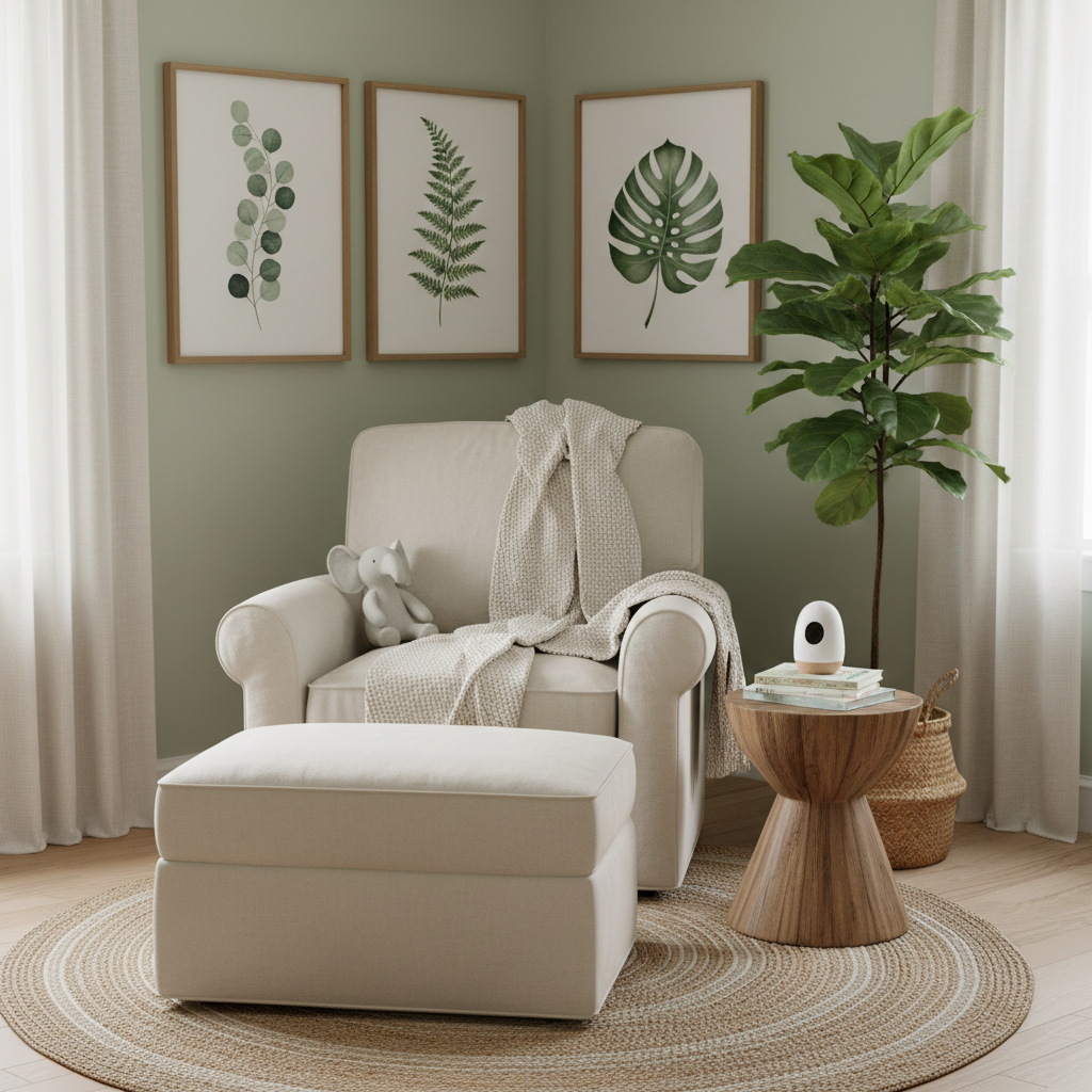 Bring the outdoors in with botanical prints and living plants. Frame whimsical illustrations of leaves, ferns, or abstract natural patterns for gallery walls. For actual greenery, choose baby-safe, non-toxic plants like a small prayer plant, a spider plant, or a Boston fern, placed out of reach. These plants purify the air and add vibrant life, contributing to a fresh, serene, and natural atmosphere that stimulates the senses.