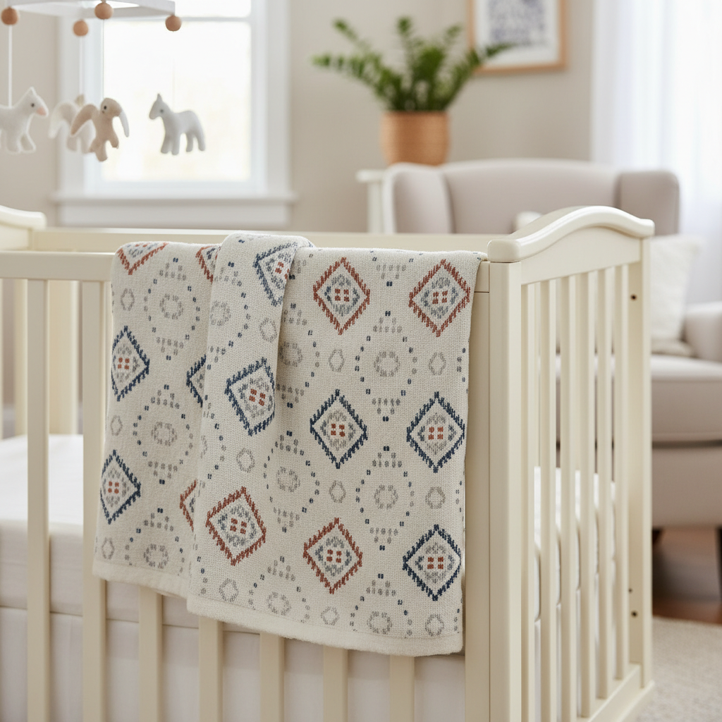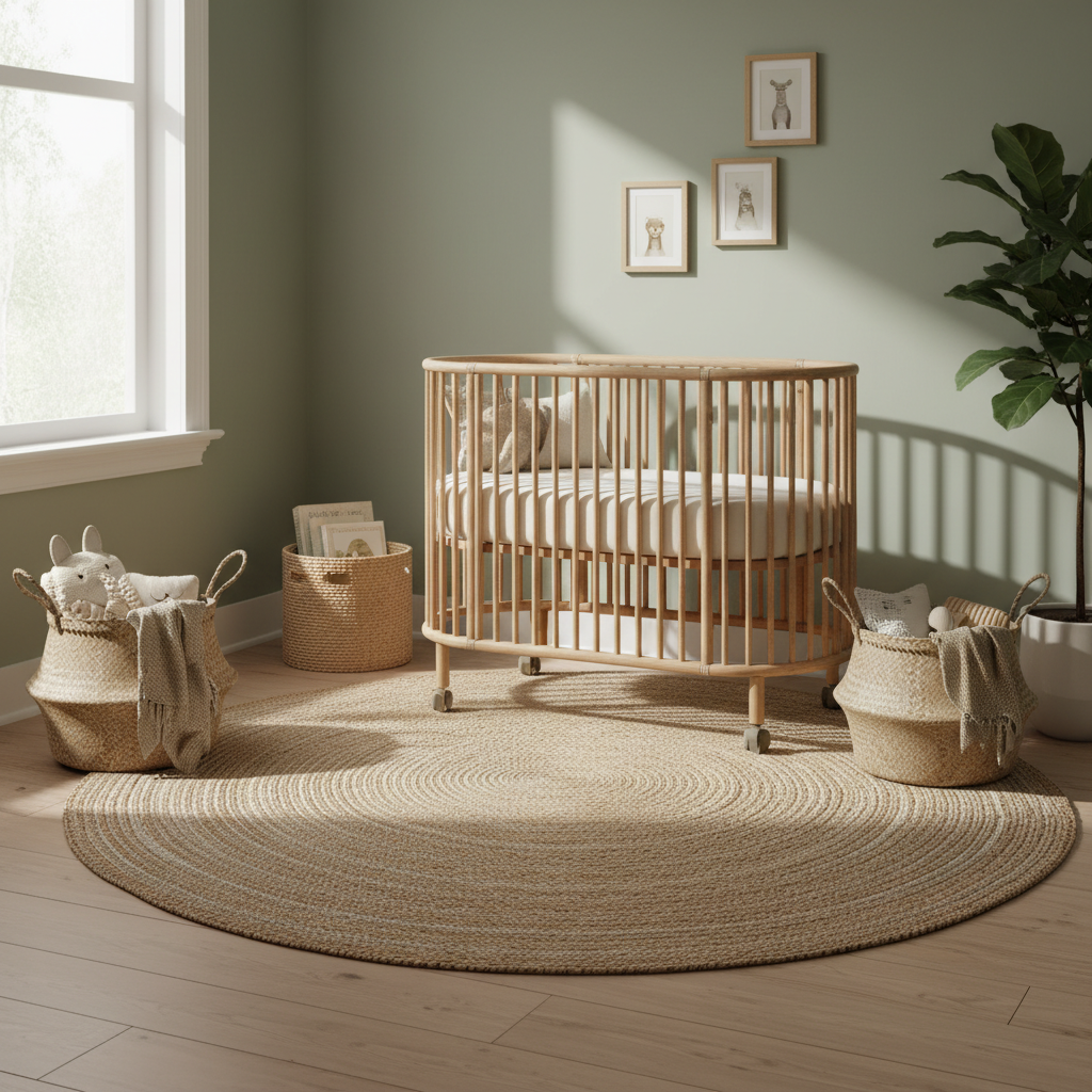 Rattan, wicker, and bamboo furniture are cornerstones of boho design. A rattan crib immediately sets the tone, offering a light, airy alternative to traditional wood or metal. Extend this natural texture with woven storage baskets for toys and blankets, a small rattan armchair for feeding, or even a woven pendant light fixture. These elements bring an organic, relaxed feel, connecting the space to nature and adding a touch of vintage charm.