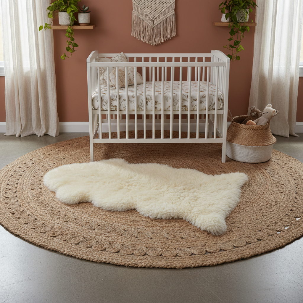Comfort is key in a nursery, and layered textiles are perfect for achieving this in a boho style. Start with a large, natural fiber rug, such as jute or sisal, as your base. On top, layer a smaller, plush rug like a faux sheepskin or a shaggy Moroccan-inspired piece. This not only adds warmth and softness underfoot but also creates depth and visual interest. Incorporate soft linen curtains, knitted blankets, and embroidered throw pillows for an ultimate cozy and inviting feel.