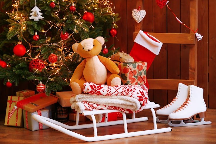 Create a whimsical touch by setting up a “Santa’s Sleigh” area in the room. You can use a small sleigh or a toy sled and add some reindeer, presents, and other festive decorations. This can be a fun and creative way to encourage imaginative play and storytelling.