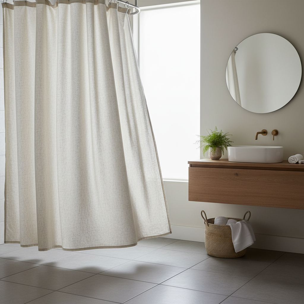 Opt for a linen shower curtain to instantly elevate the texture and softness of your bathroom. Linen, with its natural drape and slightly textured weave, offers an organic, understated elegance. Choose natural flax, crisp white, or a muted blue for a truly coastal feel. This material breathes, adding an airy quality that plastic or heavy fabric curtains cannot. Paired with simple, clean lines and natural light, a linen shower curtain enhances the serene, spa-like atmosphere, making the bathroom feel more luxurious and inviting.