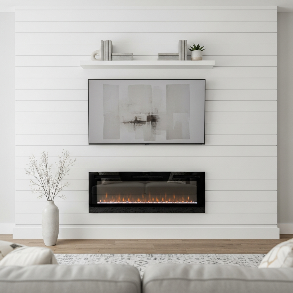 Shiplap is a classic architectural detail often found in coastal cottages. Horizontal white planks on a focal wall add texture and a sense of structural interest. It provides a clean, rhythmic look that reinforces the seaside architectural vernacular.