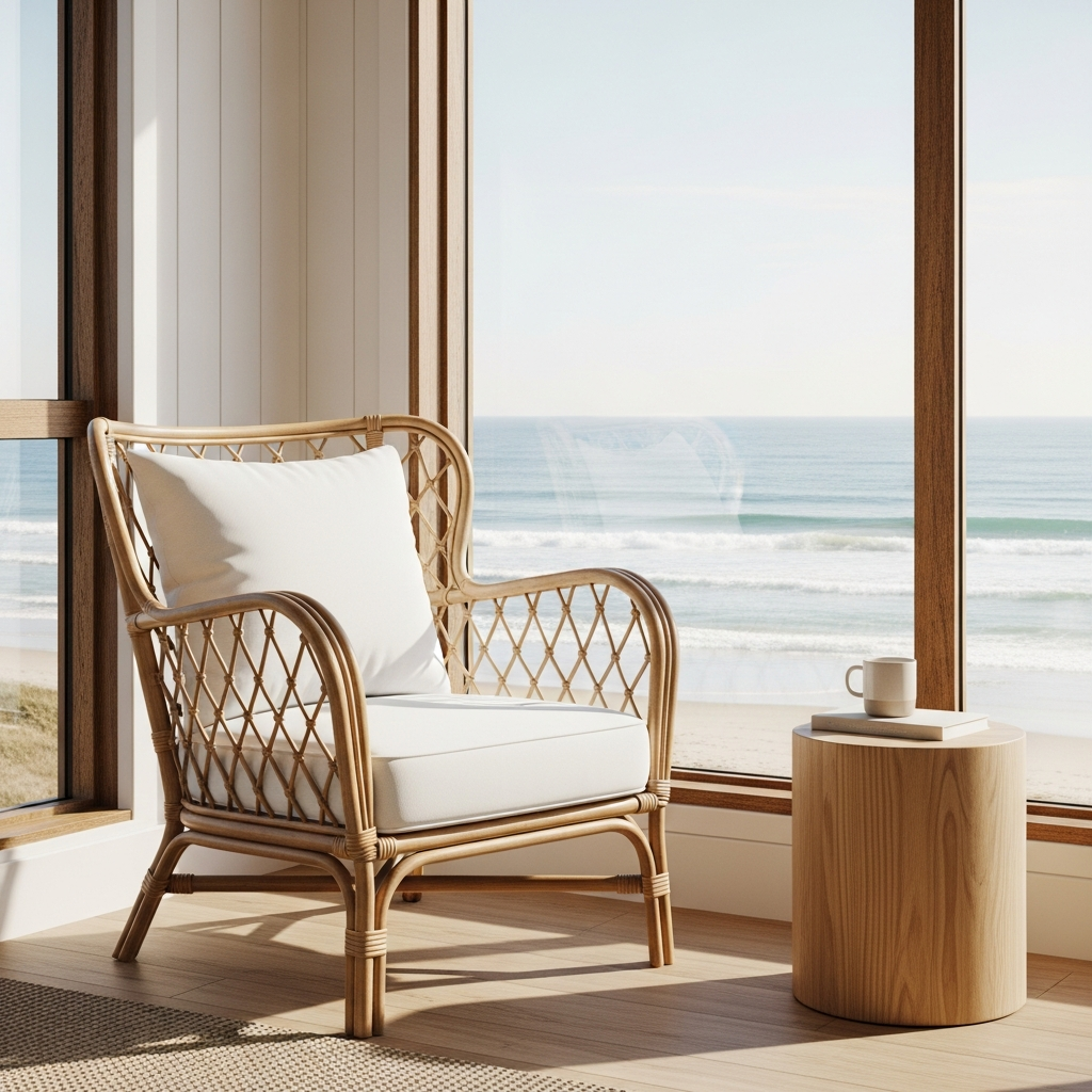 Rattan and wicker bring an immediate organic feel to a room. These materials offer a tactile quality that mirrors the textures of coastal landscapes. Consider a rattan accent chair or a wicker coffee table to add depth and a relaxed, artisanal vibe to your seating area