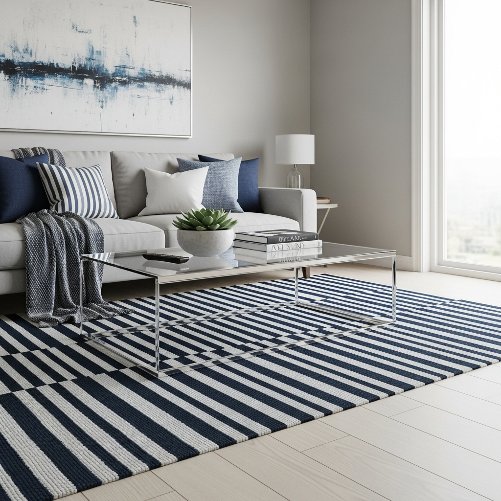 Stripes are a hallmark of maritime design. To keep the look professional rather than kitschy, use stripes sparingly. A subtle pinstripe on a throw pillow or a bold navy and white striped area rug can provide a structured, classic coastal element without overwhelming the room.