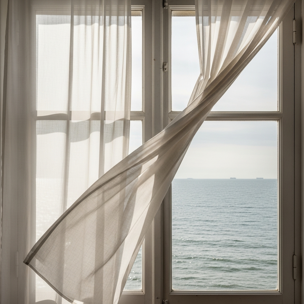 Heavy drapery can make a coastal room feel weighed down. Instead, choose sheer linen or gauze curtains. These allow privacy while still letting natural light filter through, and they sway gently with the breeze, adding movement to the room.