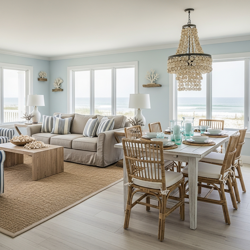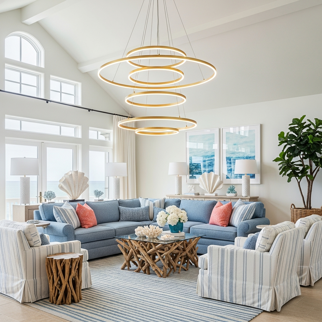 Coastal living is all about flow and openness. An open concept layout that connects the living room to the dining area or kitchen allows light and air to move freely. This spatial arrangement mimics the vastness of the horizon and encourages social interaction.