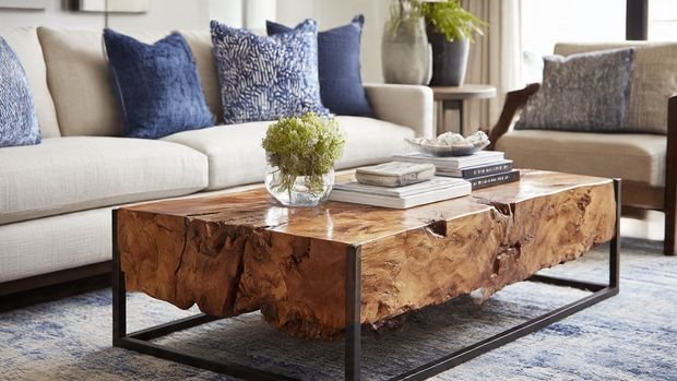 A good coffee table design ties in with your living room’s color palette. Look around your space — what tones are dominant?