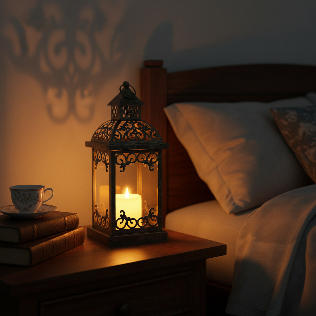 Replace conventional lamps with rustic lantern-style lighting on your nightstands or as a hanging pendant. The antique-inspired design and warm glow evoke a sense of nostalgic comfort, making the room feel intimate and cozy.
