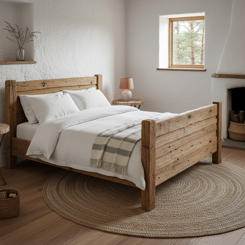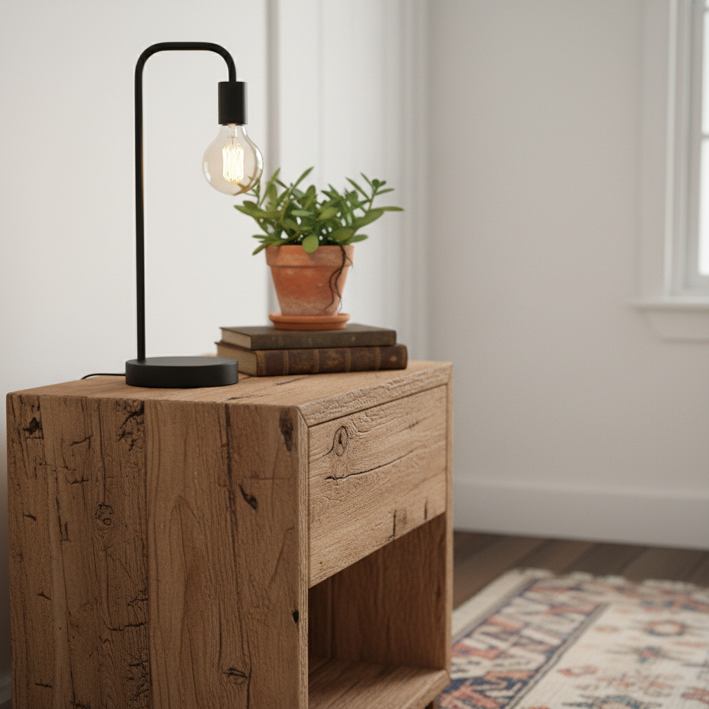 Flank your bed with nightstands crafted from unfinished, reclaimed, or lightly distressed wood. Their raw beauty and solid form provide practical surfaces while reinforcing the natural, earthy feel of the room. The atmosphere becomes grounded and authentic.