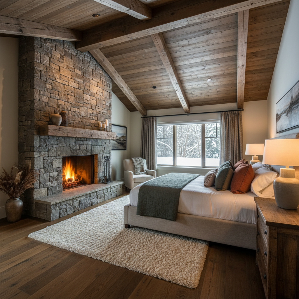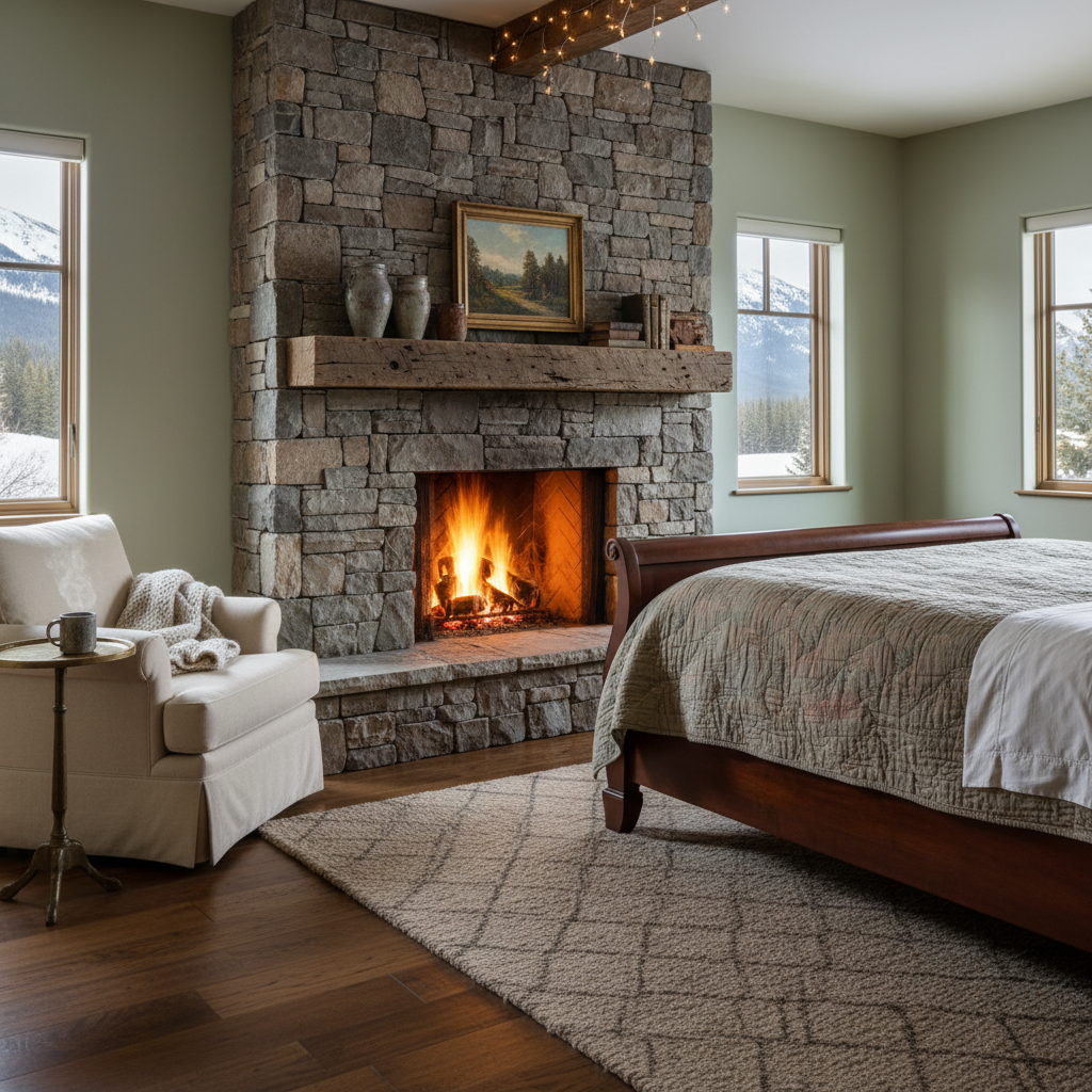 A stone fireplace, even if purely decorative, brings immense warmth and a focal point to a country bedroom. Adorn a rustic wooden mantel with candles, pottery, and natural elements to enhance its cozy appeal, creating a natural gathering point.
