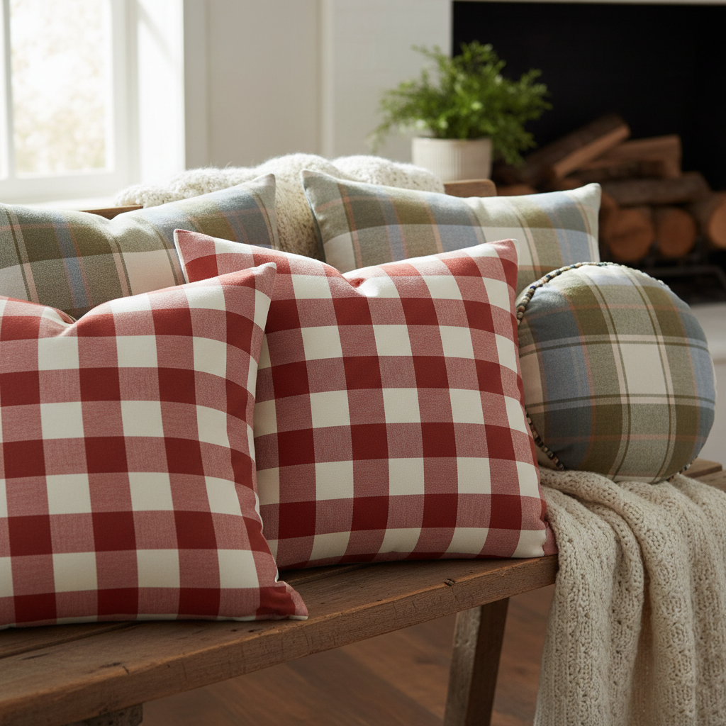 Subtly introduce classic country patterns like gingham or plaid through throw pillows, a small accent blanket, or even curtains. Choose muted tones to keep the look sophisticated and warm, adding a touch of traditional charm without being overwhelming.