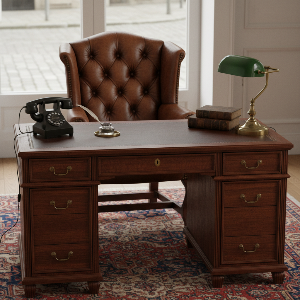 3. The Timeless Charm of an Antique Desk and Leather Armchair