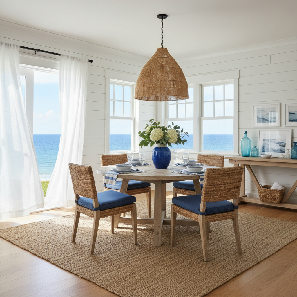 Bring the serenity of the seaside indoors with a light and breezy makeover. The color palette revolves around crisp whites, sandy beiges, and various shades of blue, from sky to deep navy. Materials like bleached wood, wicker, rattan, and linen evoke beach house charm. Furniture is often relaxed yet elegant, with slipcovered chairs or benches. Nautical accents are subtle, letting the tranquil, airy atmosphere speak volumes of relaxation and ease.