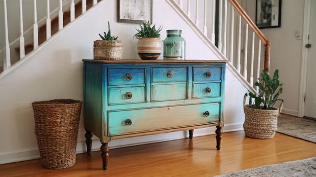 If you want something artistic but subtle, try a color wash โ a diluted paint technique that lets the wood grain show through. It gives furniture a soft, layered look thatโs ideal for boho or coastal styles.