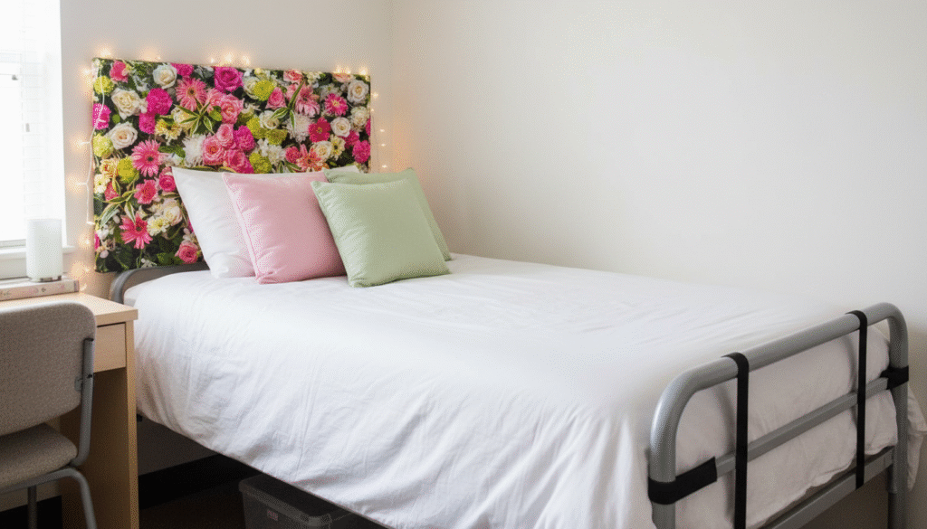 Most dorm beds donโt come with headboards, but removable ones are easy to install.