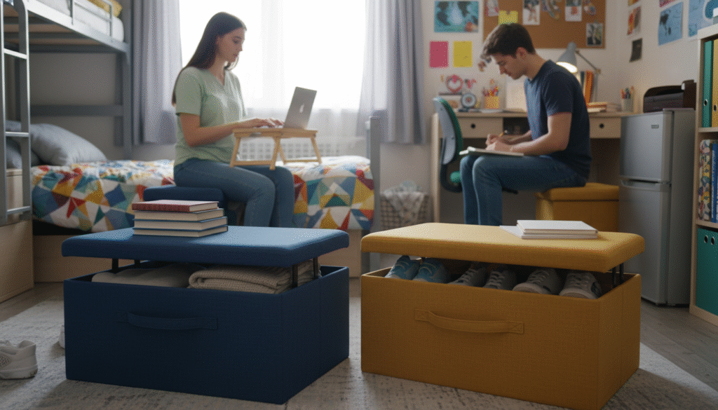 Dorm rooms rarely have enough storage. Storage ottomans are perfect.