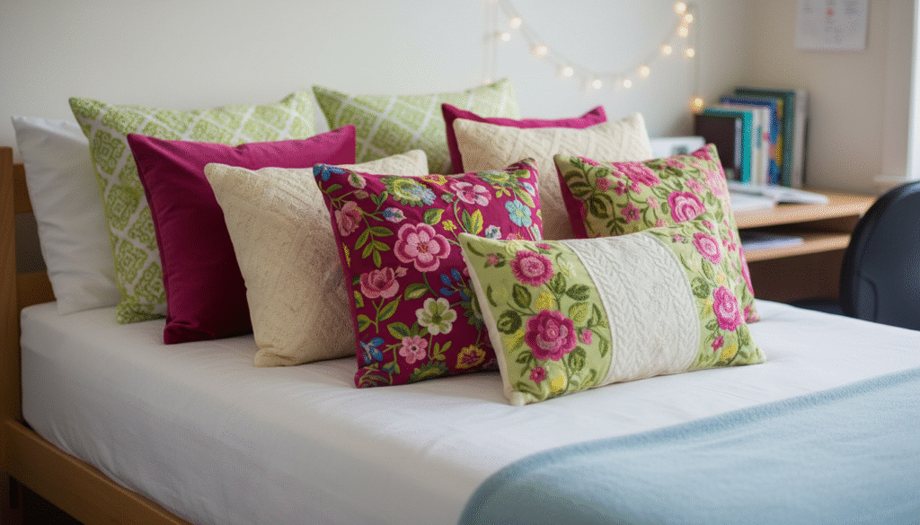 Throw pillows instantly elevate a dorm bed or futon.