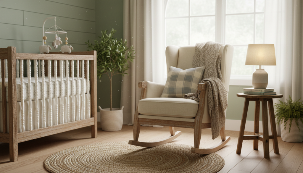 A comfortable rocking chair or glider is essential for any nursery, and in a farmhouse setting, it becomes a cozy focal point. Choose one with a simple wooden frame, perhaps with distressed details, and plush, neutral-toned upholstery. Add a soft knitted throw and a supportive pillow for ultimate comfort during those precious bonding moments.