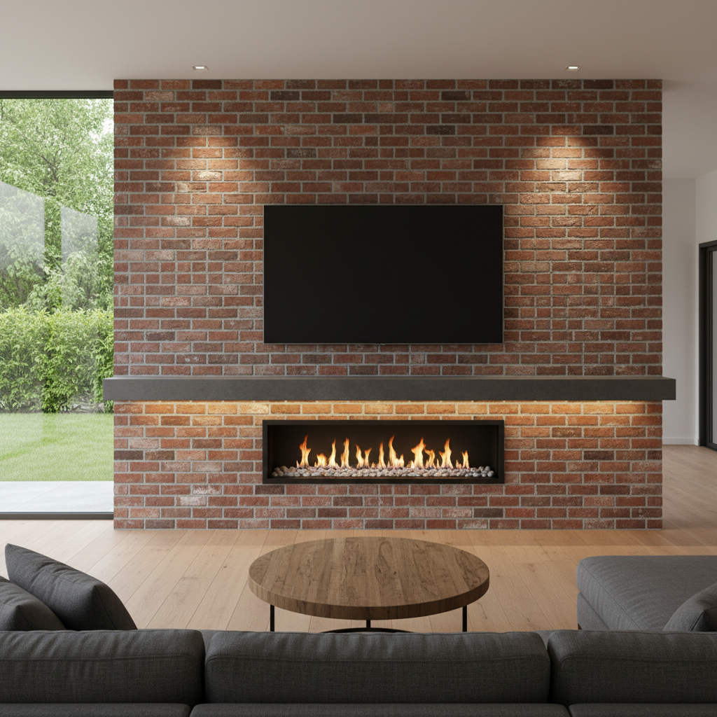 Introduce rustic charm or industrial edge with thin brick veneer. Whether painted white for a shabby chic look or left natural for a loft feel, the texture adds immense character. The TV can be mounted directly onto the brick, becoming part of its raw appeal. Pair with comfortable, worn leather furniture for an authentic vibe.