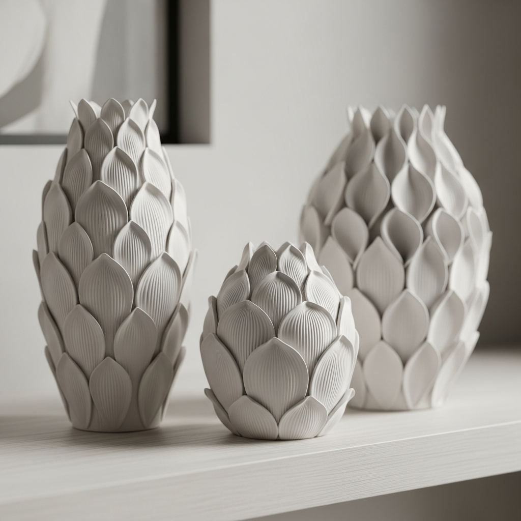 Vases that are works of art themselves can enhance your decor even when they are empty. Look for ceramic pieces with embossed floral textures or shapes inspired by opening buds. These add a sophisticated, tactile element to shelves and mantels.