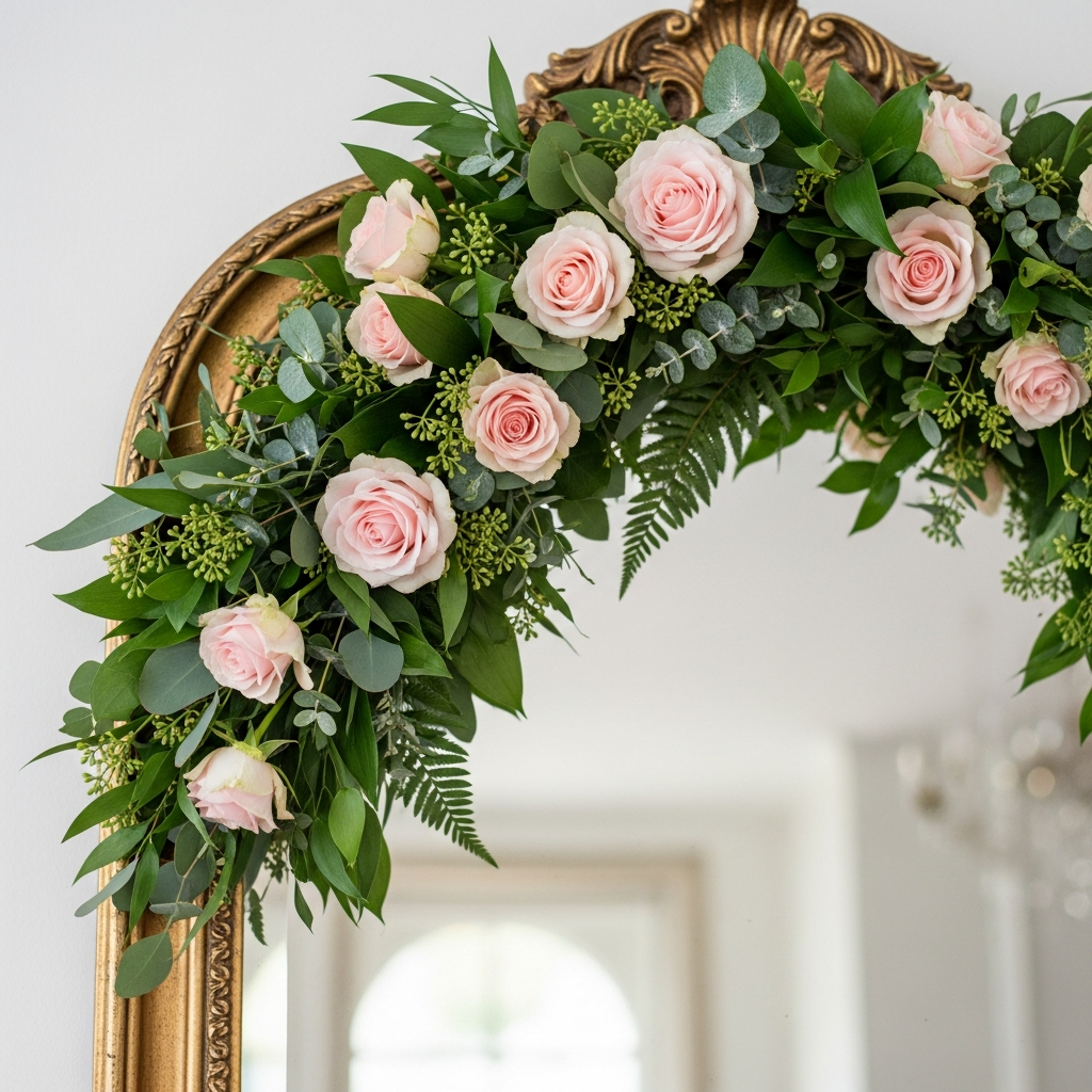 Wreaths aren’t just for the front door. A delicate wreath made of silk flowers or grapevine and moss can look stunning hung on an interior door or even over a large mirror in the living room, adding height and texture to your decor.