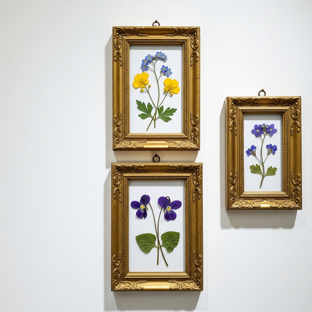 Pressed flowers preserved between two panes of glass offer a minimalist and elegant take on the floral trend. You can create a gallery wall of various species, which serves as a scientific yet artistic tribute to the season’s growth.