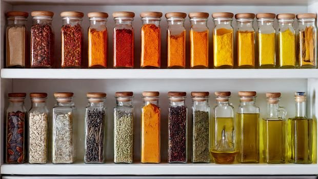 Display your favorite spices and oils in decorative bottles or jars.