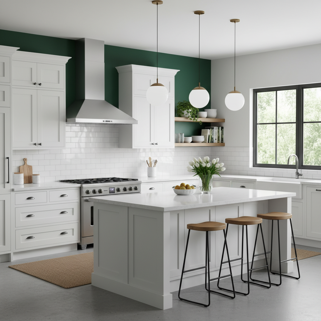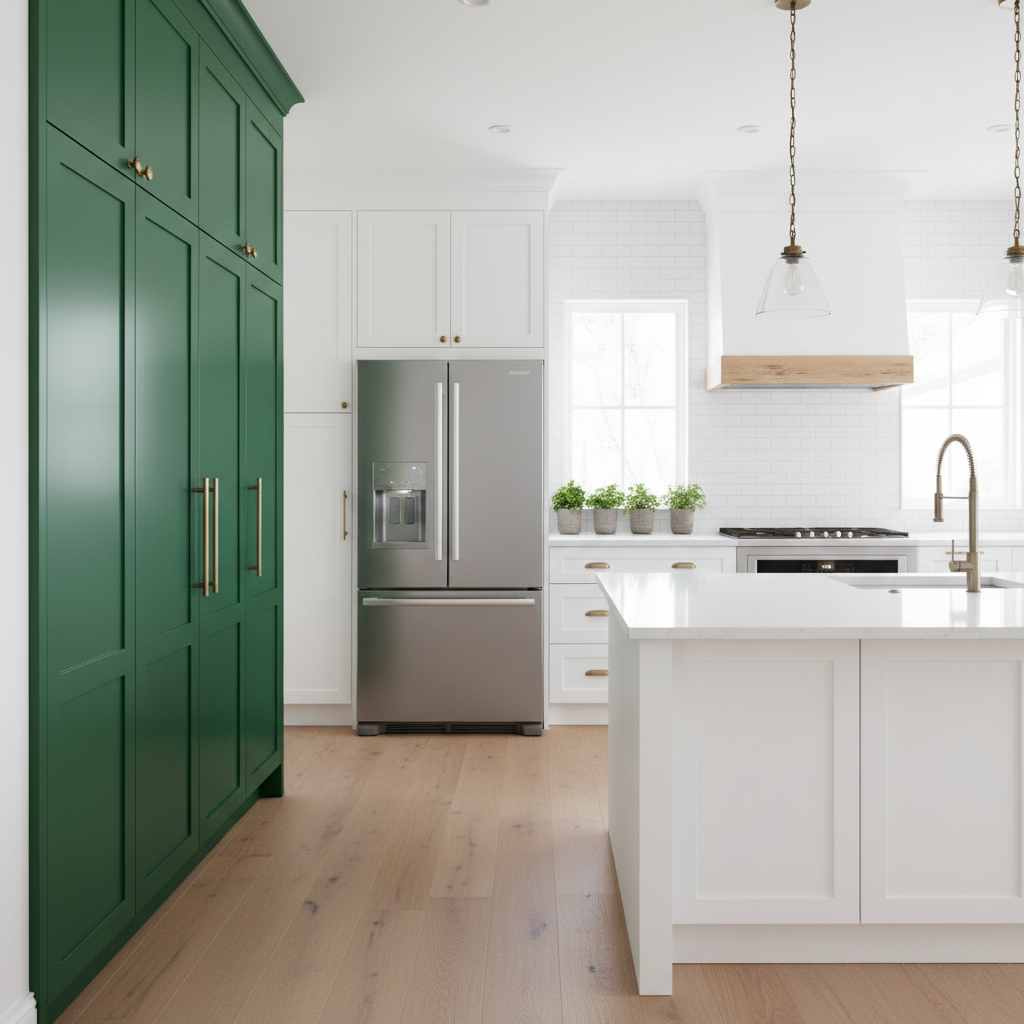 Inject energy into your kitchen with an emerald green accent wall or a single block of emerald cabinetry. This vibrant shade works wonderfully with crisp white or dark grey, creating a modern and playful contrast. Use minimal, sleek hardware to keep the focus on the color. The mood is energetic, creative, and undeniably stylish, perfect for a contemporary home.