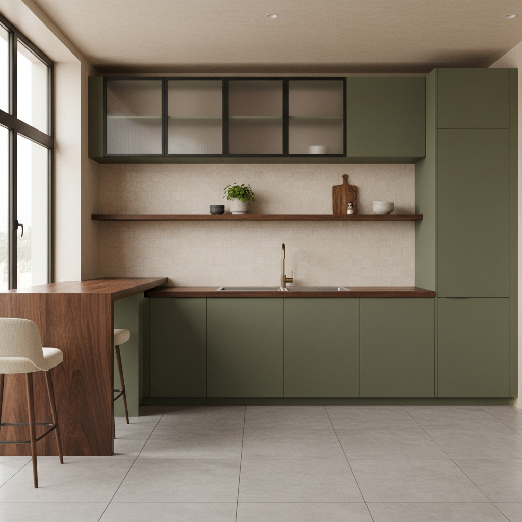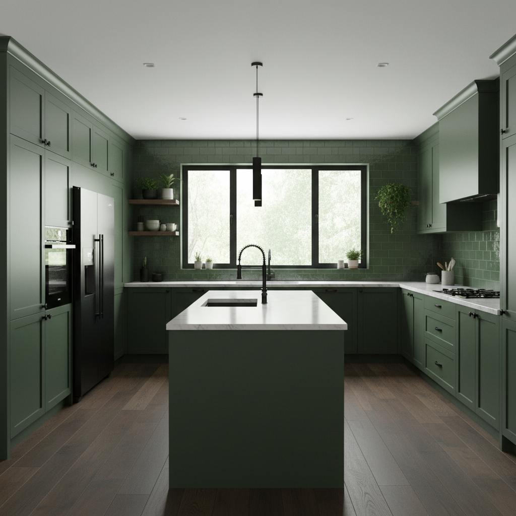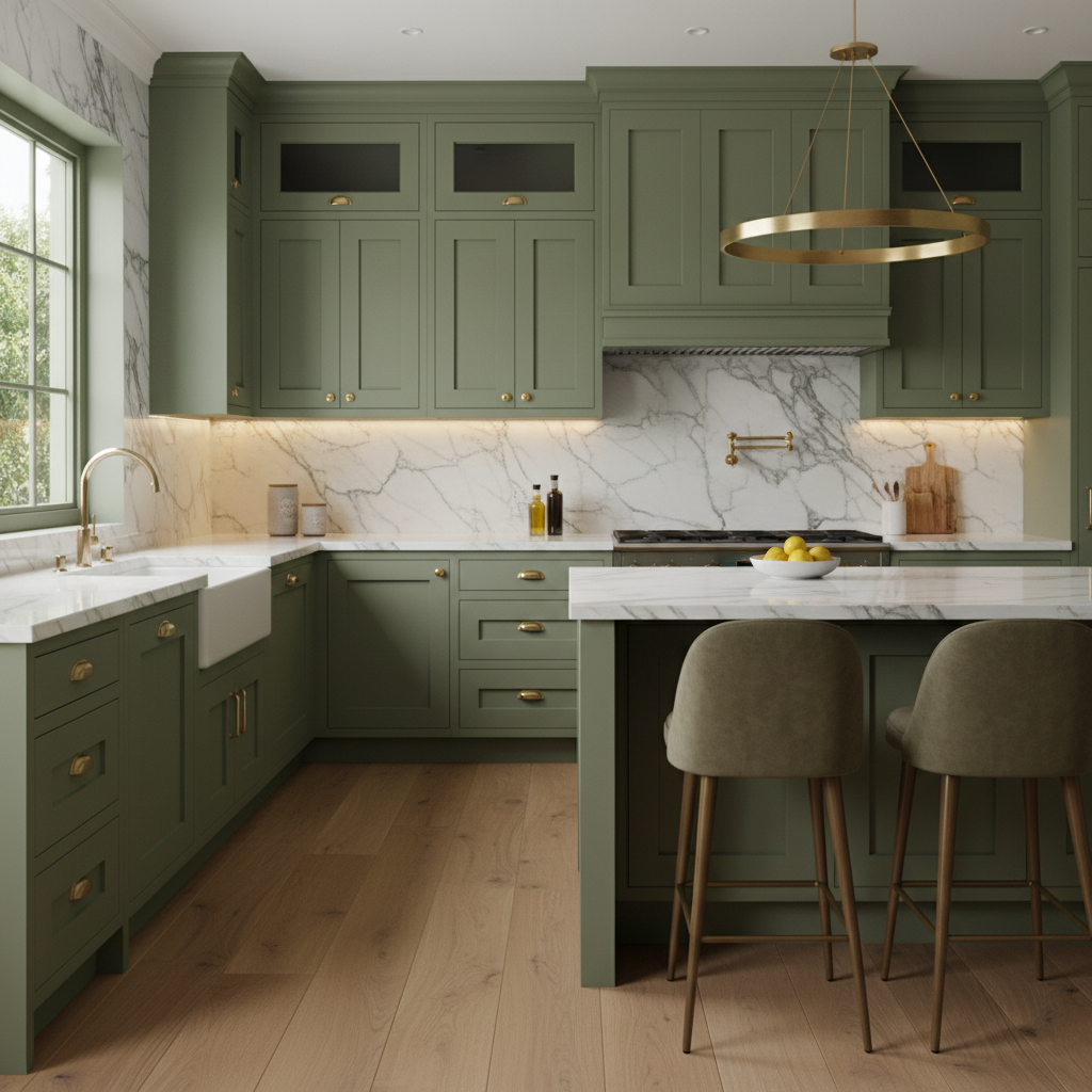 Deep olive green brings a rich, sophisticated drama to the kitchen. This earthy, profound hue is perfect for creating a cozy, luxurious, and grounded space. It evokes the feeling of a lush forest, offering a sense of stability and timeless elegance. Olive green works wonderfully in both traditional and modern settings, providing a strong anchor for your design.