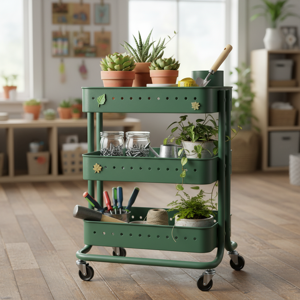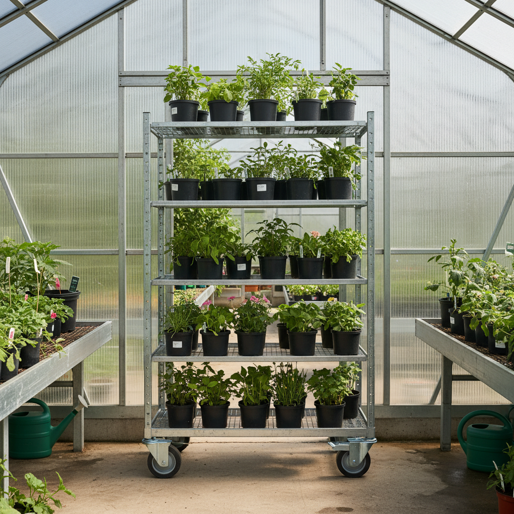 For small spaces or frequently moved items, rolling cart shelves are incredibly convenient. They provide mobile storage for tools, small plants, or potting supplies, allowing you to bring your essentials wherever you’re working in the greenhouse.